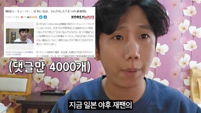 記事によると、ヨンチャンさんは日本の都市を回りながら動画での発信を行っているYouTuberであり、問題となった動画は活動を通じて感じた「日本で9か月住んで話したかったこと」を語ったもの。